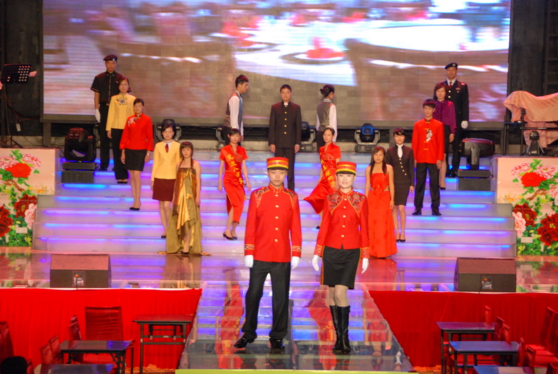 09年8月2日,在合肥银瑞林国际大酒店举办的2009年安徽省旅游服饰展示会(赛)上,我司17名队员,经过激烈的角逐,在26个高星级酒店和旅游景区参赛队中初露头角,以均分89.401、排名第六的好成绩,击败其他20个代表队,荣获三等奖的荣誉。